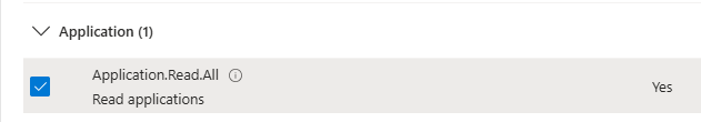 - Wähle unter Application zusätzlich Application.Read.All aus, wenn du eine Erinnerung an das Ablaufdatum des Secrets erhalten willst