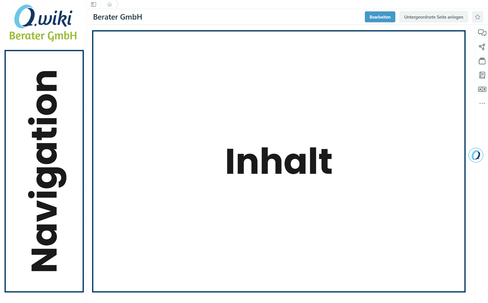 Mit der neuen linken Navigationsleiste verfolgen wir das Konzept, die Navigationsfunktionalitäten von Q.wiki gebündelt auf der linken Seite anzubieten. Dadurch wird in der Mitte des Bildschirms mehr Platz für die Fokussierung auf den Inhalt geschaffen.