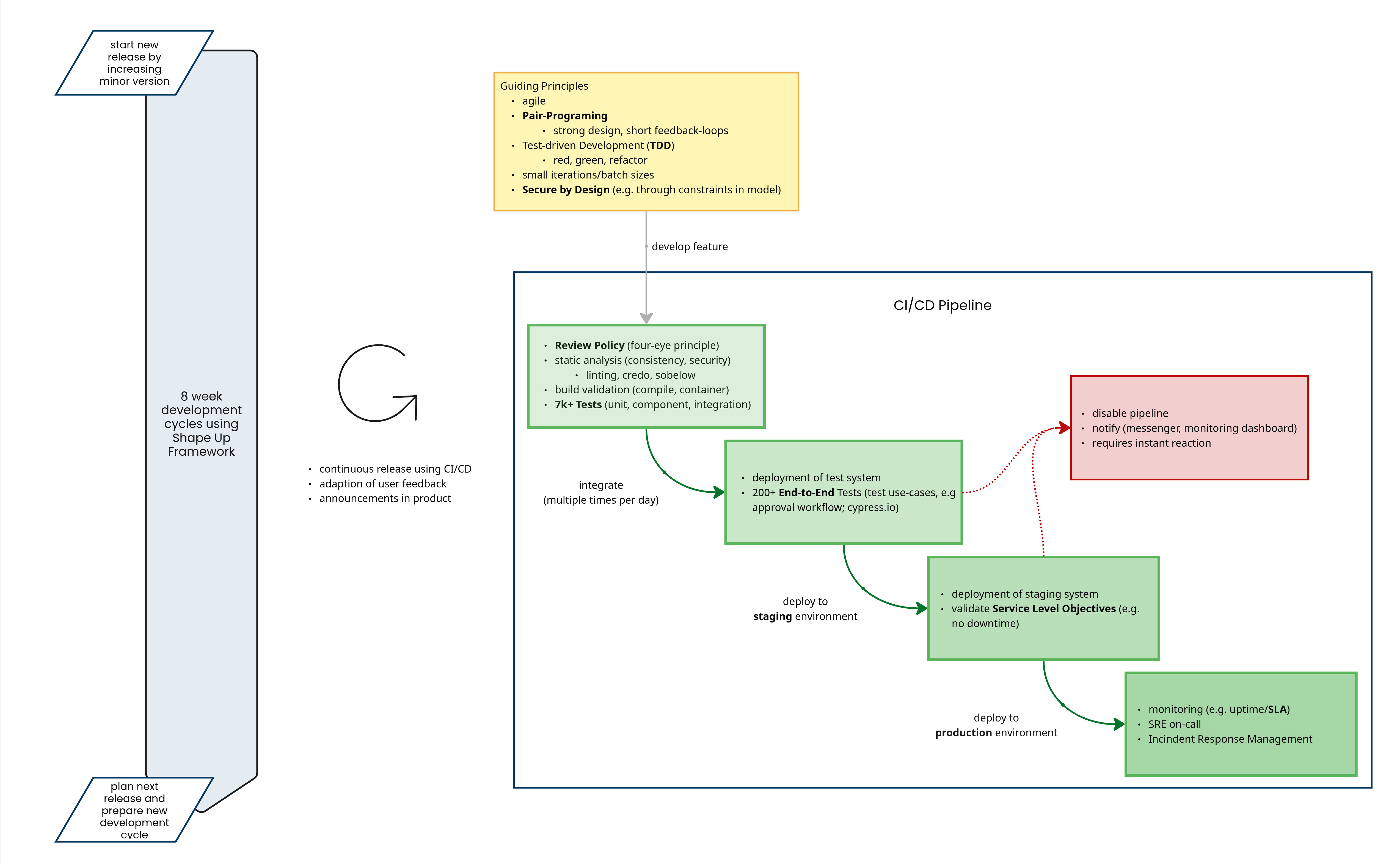 Q.wiki Now! updates are released several times a day as very small, incremental code changes via a so‑called CI/CD pipeline. Each change passes through multiple test stages: